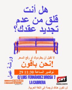 Organizado por Sindicato de Inquilinas e Inquilinos de Madrid y CNT Sierra Norte de Madrid.